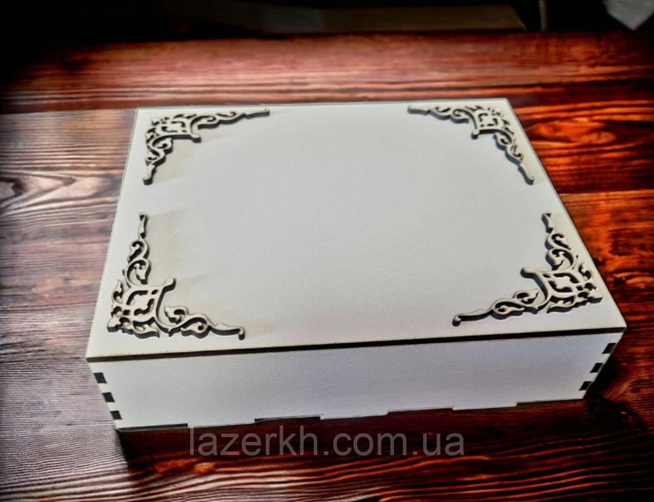 Ласкаво просимо до дивовижного світу подарункових коробок із МДФ! Наша колекція створена з любов'ю й натхненням, щоб зробити ваше подарункове паковання особливим і незабутнім. Кожна коробка виготовлена з високоякісного МДФ, що забезпечує міцність, довговічність і елегантний зовнішній вигляд. Елегантний дизайн і стиль. Наші подарункові коробки з МДФ є ідеальним поєднанням естетичної привабливості та функціональності. Кожна деталь ретельно продумана, щоб здивувати та потішити вас своїм вишуканим дизайном, який підкреслить значущість і особливість кожного вашого подарунка. І індивідуальність і персоналізація. Ми пропонуємо різноманітність розмірів і форм коробок, щоб ви могли вибрати саме той варіант, який ідеально відповідає вашим потребам. Крім того, ми раді запропонувати послугу персоналізації, щоб ви могли додати унікальні написи або логотипи, роблячи ваш подарунок ще особливим і значущішим. Надійність і захист. МДФ — це міцний матеріал, який забезпечує надійний захист вмісту вашої коробки. Ви можете бути впевнені, що ваш подарунок збережеться в ідеальному стані та слугуватиме тривалий час.
